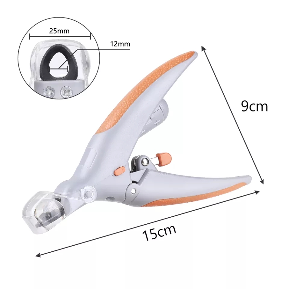 The Illuminated Nail Clipper for pets is a safe and easy way to clip your pet’s nails. The clippers have an LED light that lights up to help you see the bloodlines in light colored nails for easy and safe trimming. The wave shaped grip handle fits your hand comfortably providing smooth use and not easy to slip. The edge cover of the clipper blade has a magnify glass providing up to 5 times the magnification. The nail clippers have a nail trapper that collects your pet’s nail trimmings for easy disposal. Clippers use 3 LR44 batteries which are included.