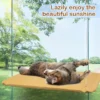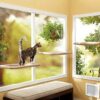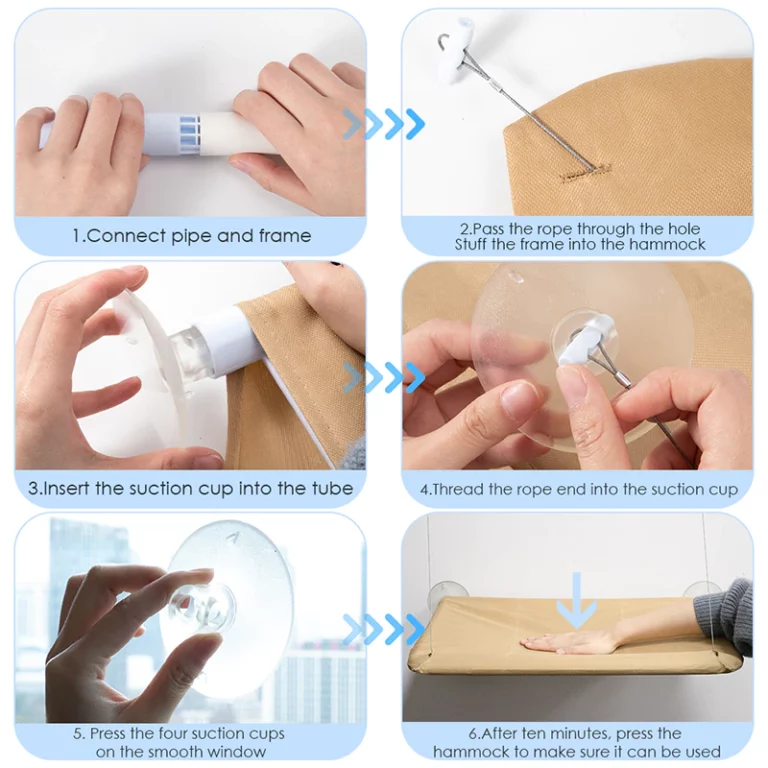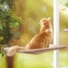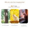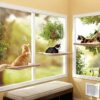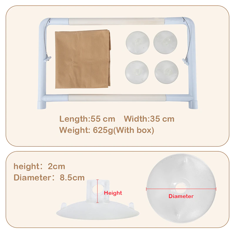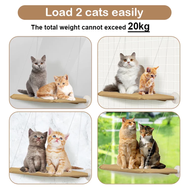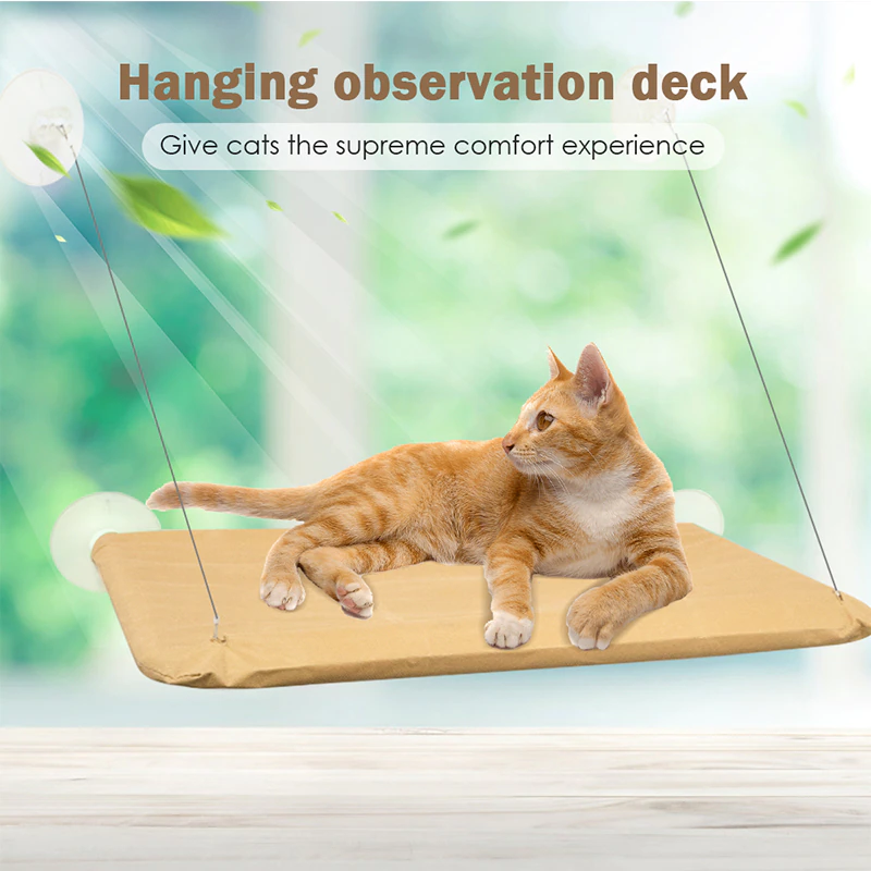 Window Mounted Cat Bed can hold up to 40lbs. Seat attaches to window with 4 suction cups. Clean window before attaching. If cold outside, warm suction cups in hot water for 1 minute for better attachment. Cloth seat cover is machine washable. Seat is 55cm by 35cm.